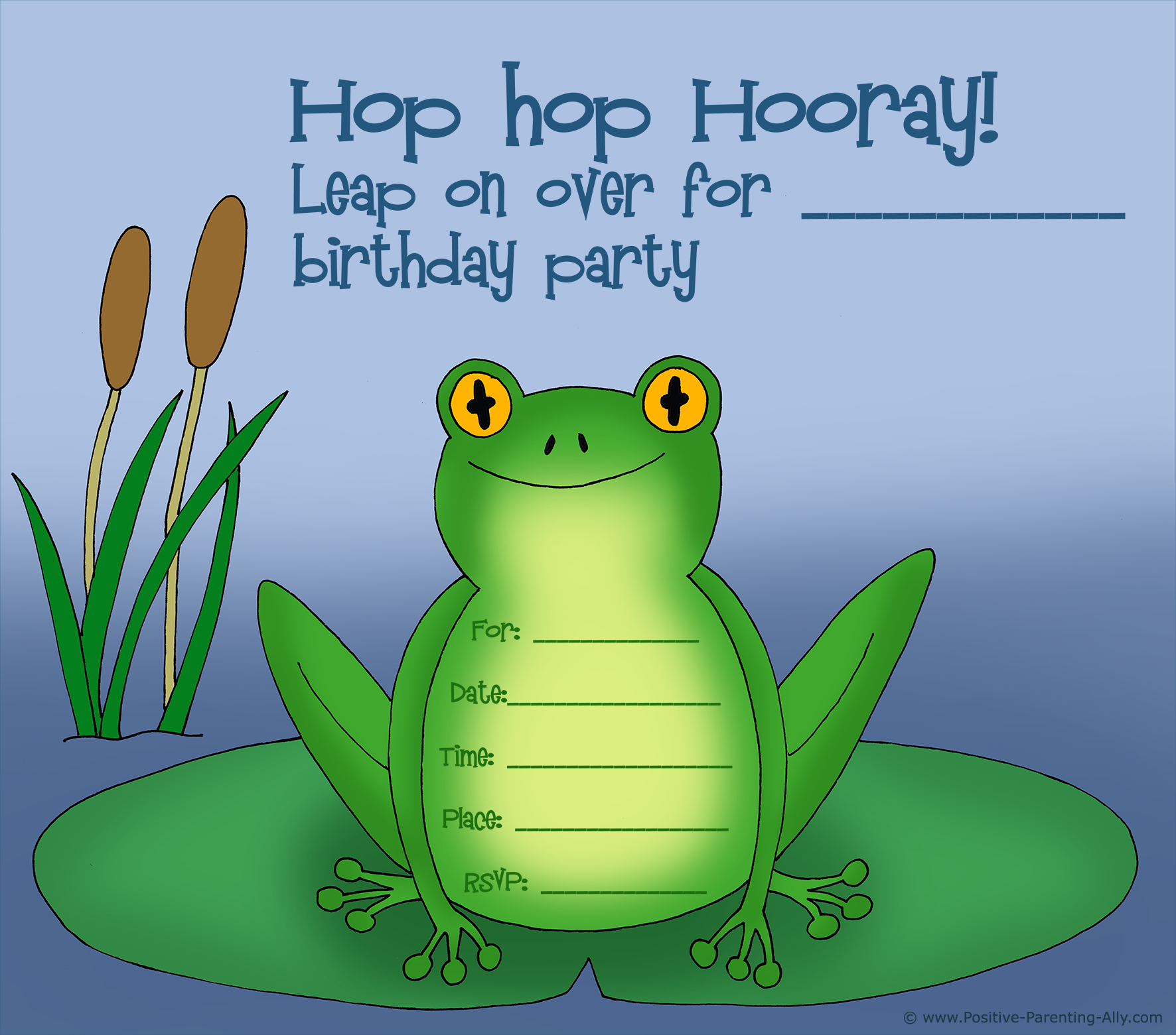 This one of birthday party invites features a cute green frog and is pretty gender neutral.